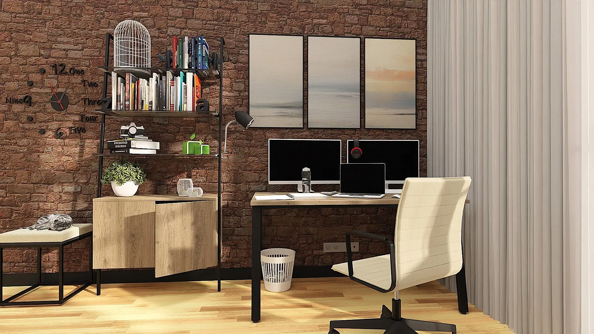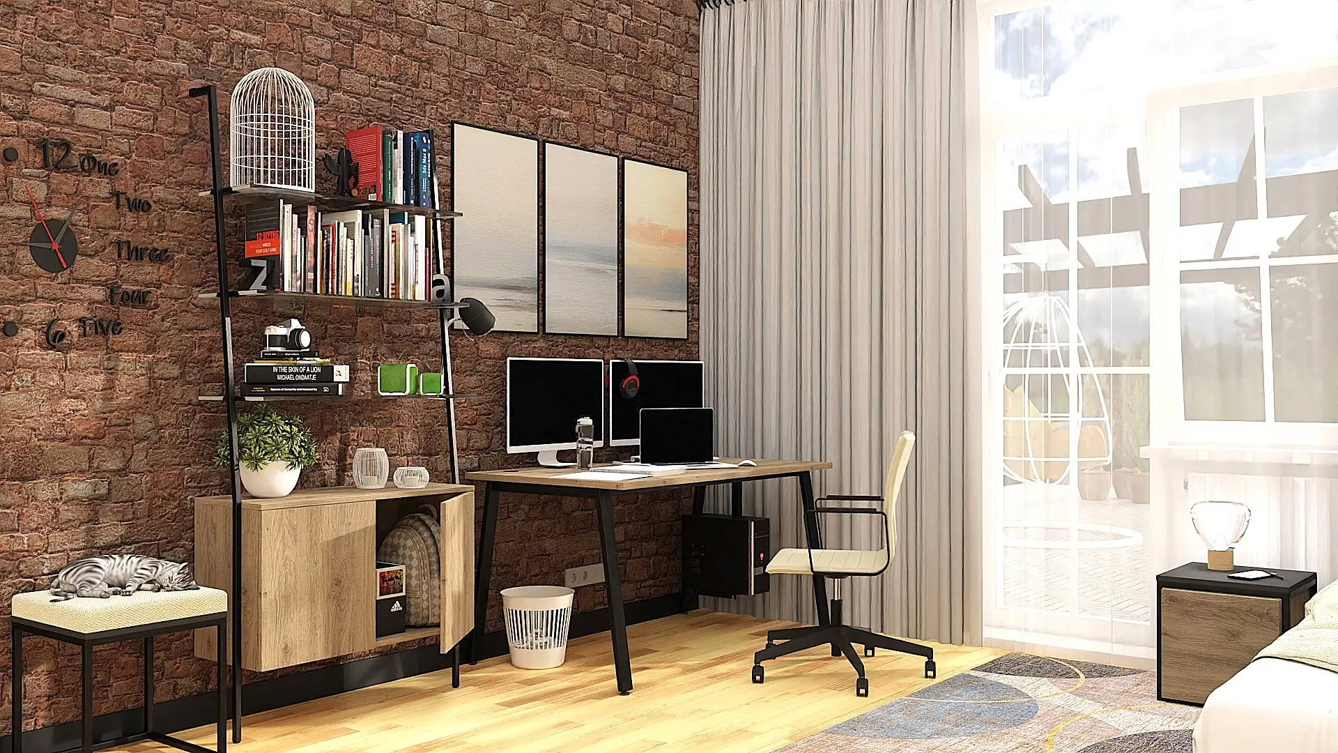 You don't need a large room to create a comfortable and ergonomic workspace. This 8.5 m² Home Office layout proves how a well-thought-out combination of furniture and accessories can completely transform even a small area into a fully functional remote work zone.