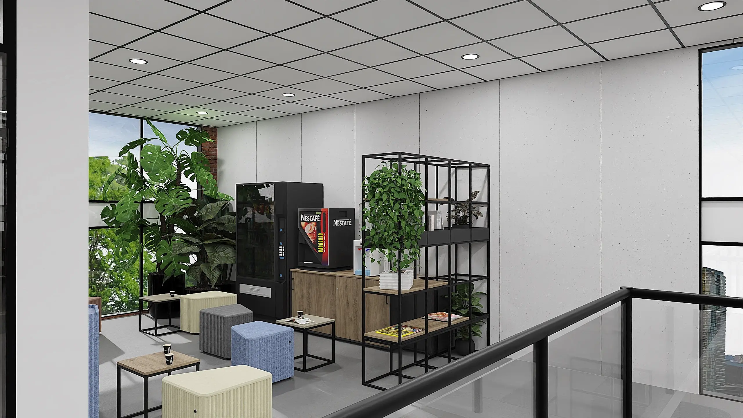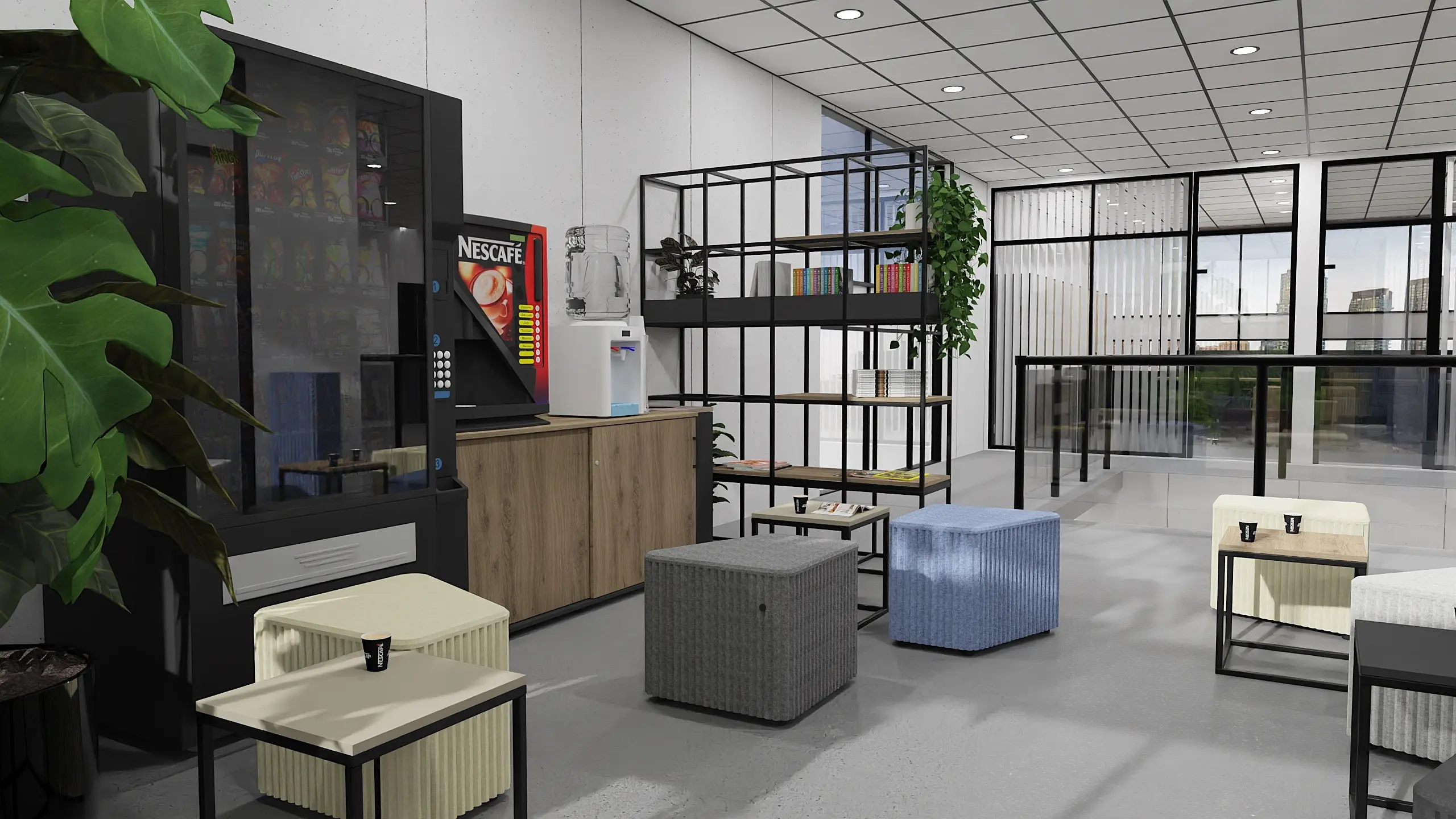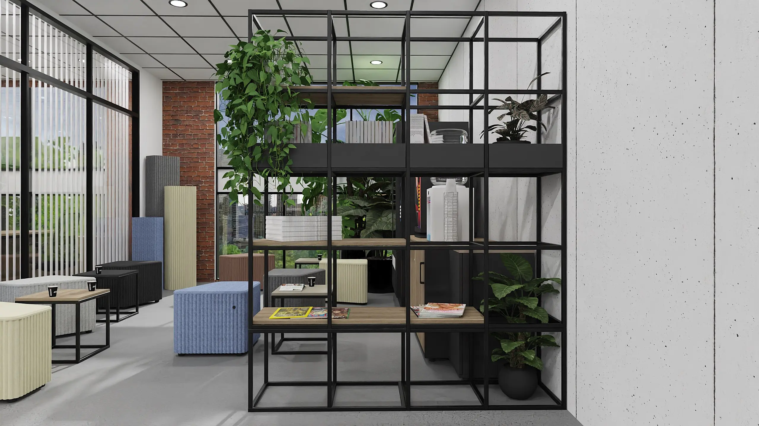 This version of Coffee Point is a perfect ready-to-use solution for hybrid zones, mobile spaces, chillout areas, open-plan offices, hallways, lobbies, or as a complement to larger shared spaces. The layout requires no permanent installation – it’s ready for immediate implementation, making the most of the available 18 m².