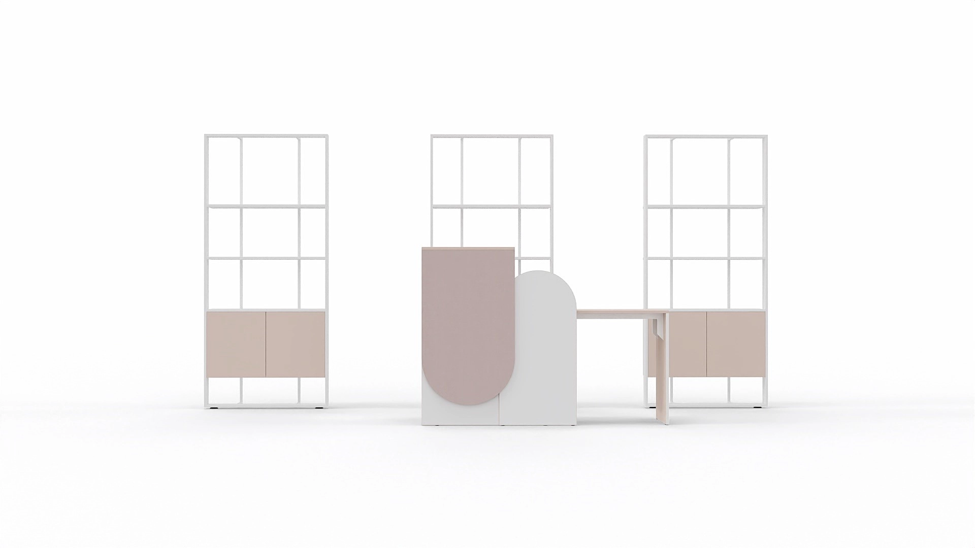The Averto reception is a stylish and compact welcome area that blends modern geometric lightness with a soft, biophilic-inspired color palette. It’s an ideal solution for boutique reception zones, elegant offices, or small showrooms where first impressions matter.