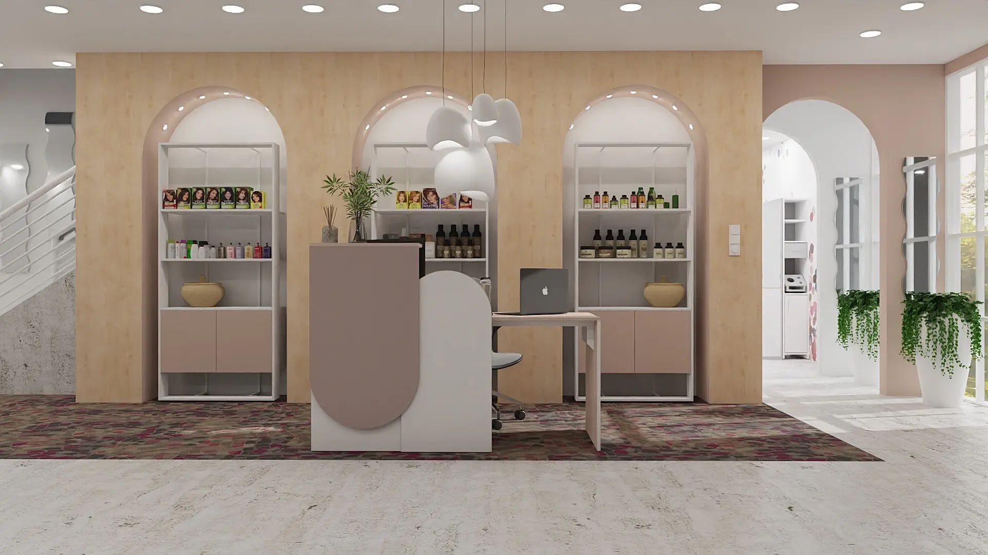 Looking for a minimalist reception design with impact and a feminine touch? This ready-made setup is perfect for small offices and showrooms.