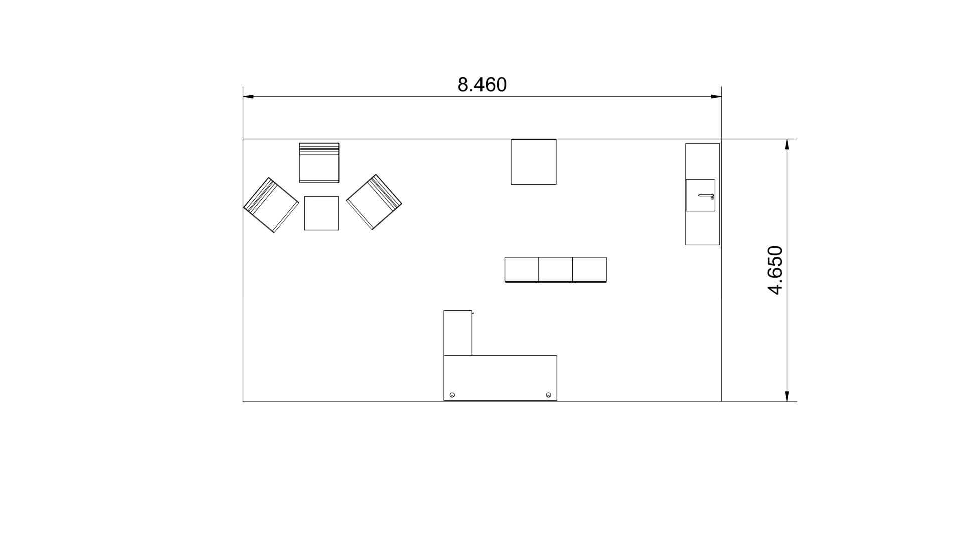 This layout offers a fully equipped, immediately implementable solution that makes the most of your space, providing a comfortable environment for working, relaxing, and making coffee.