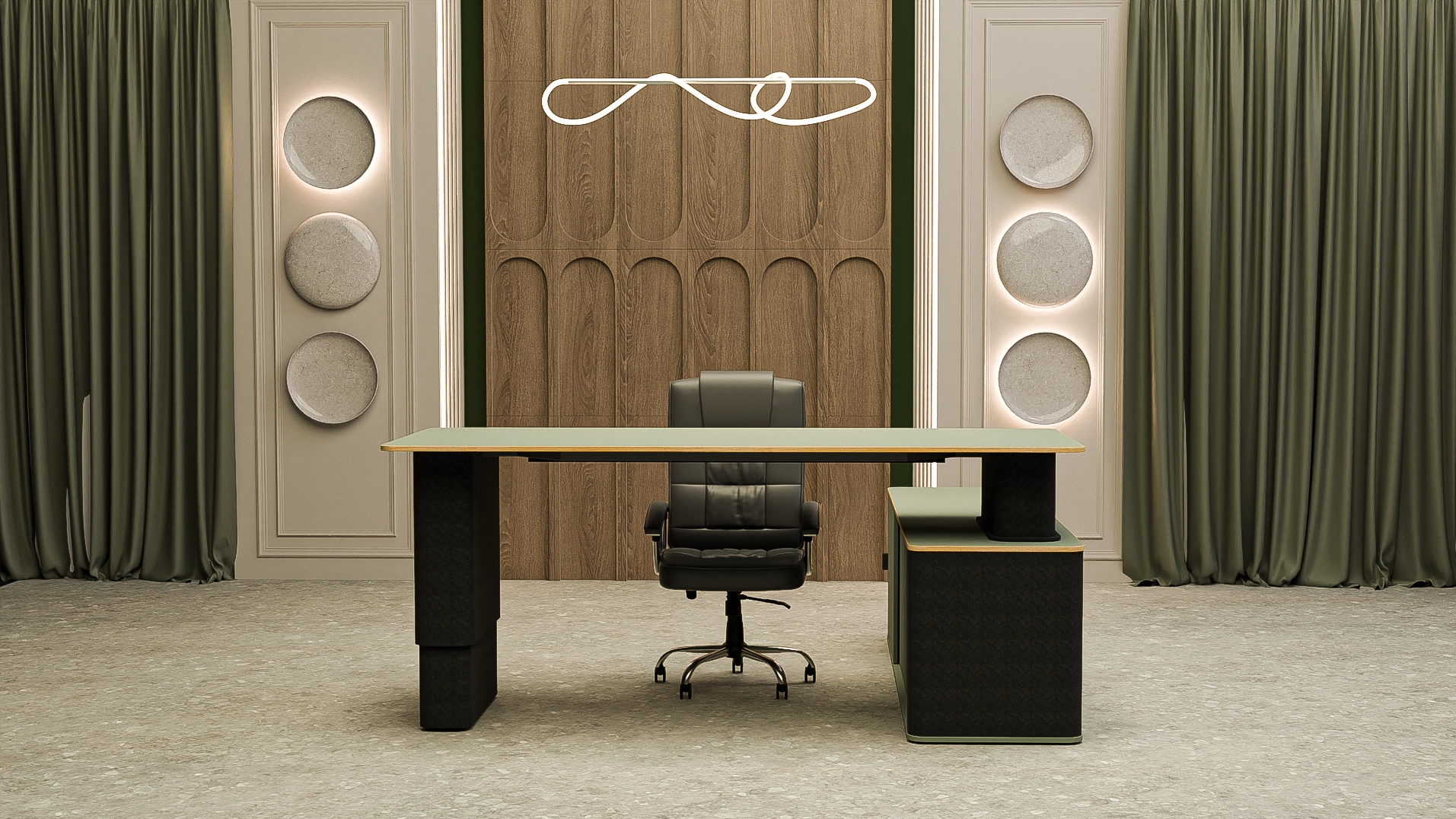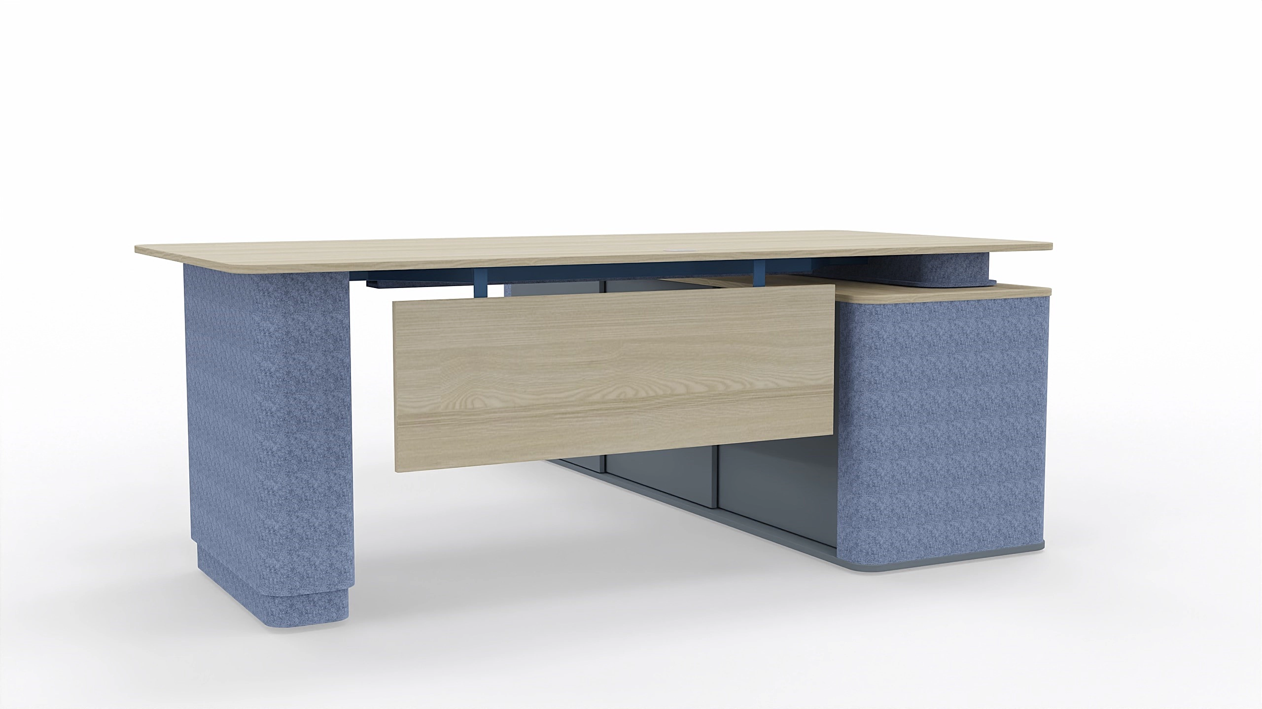Electrically height-adjustable desk with under-desk sideboard