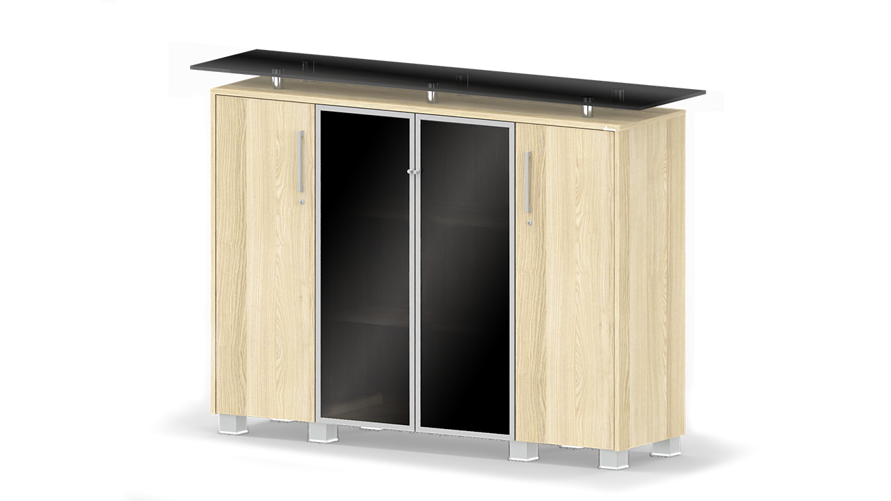 Graf showcases hog the limelight with their unusual design. They appear light thanks to glass doors in aluminum frame.