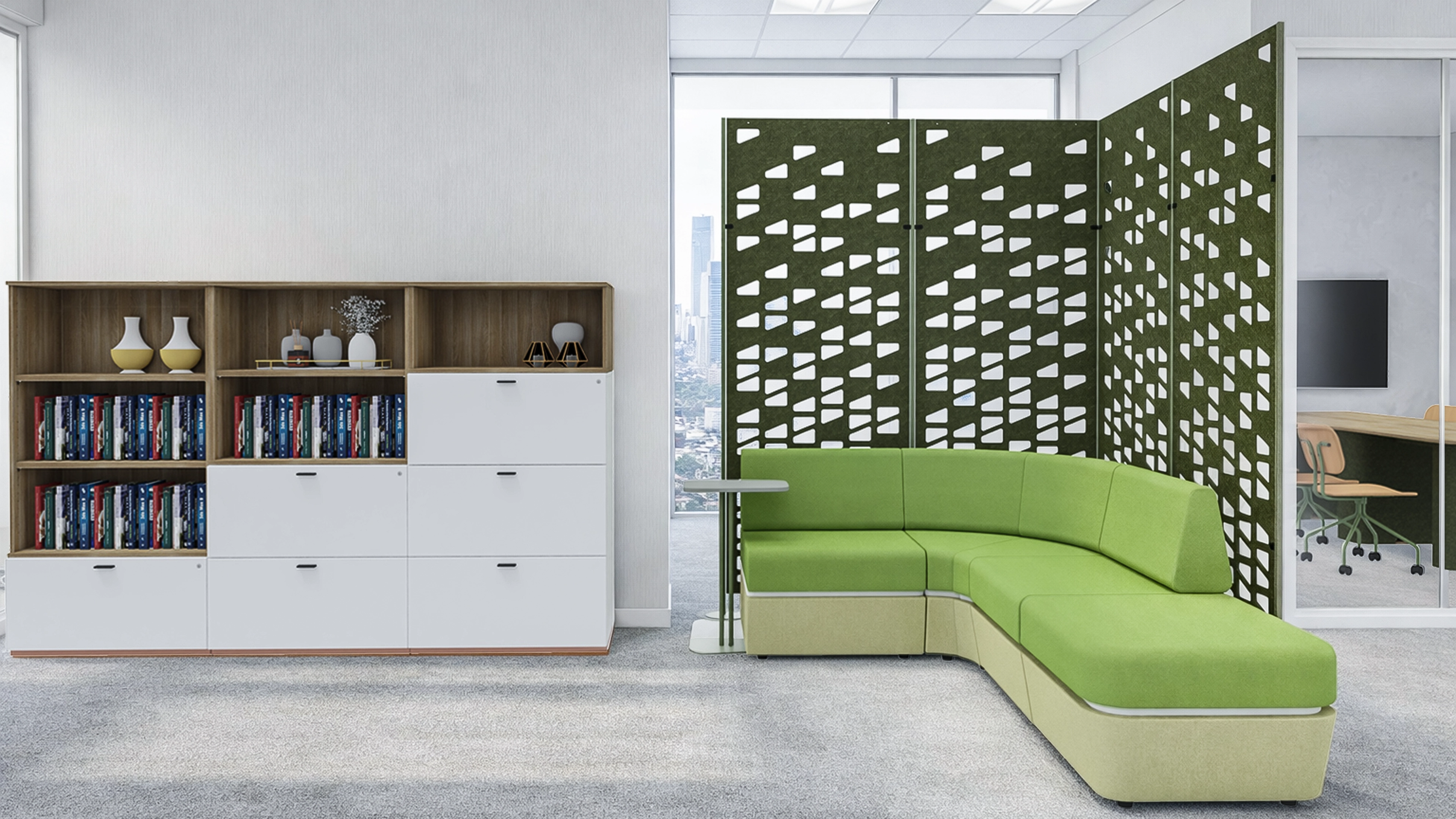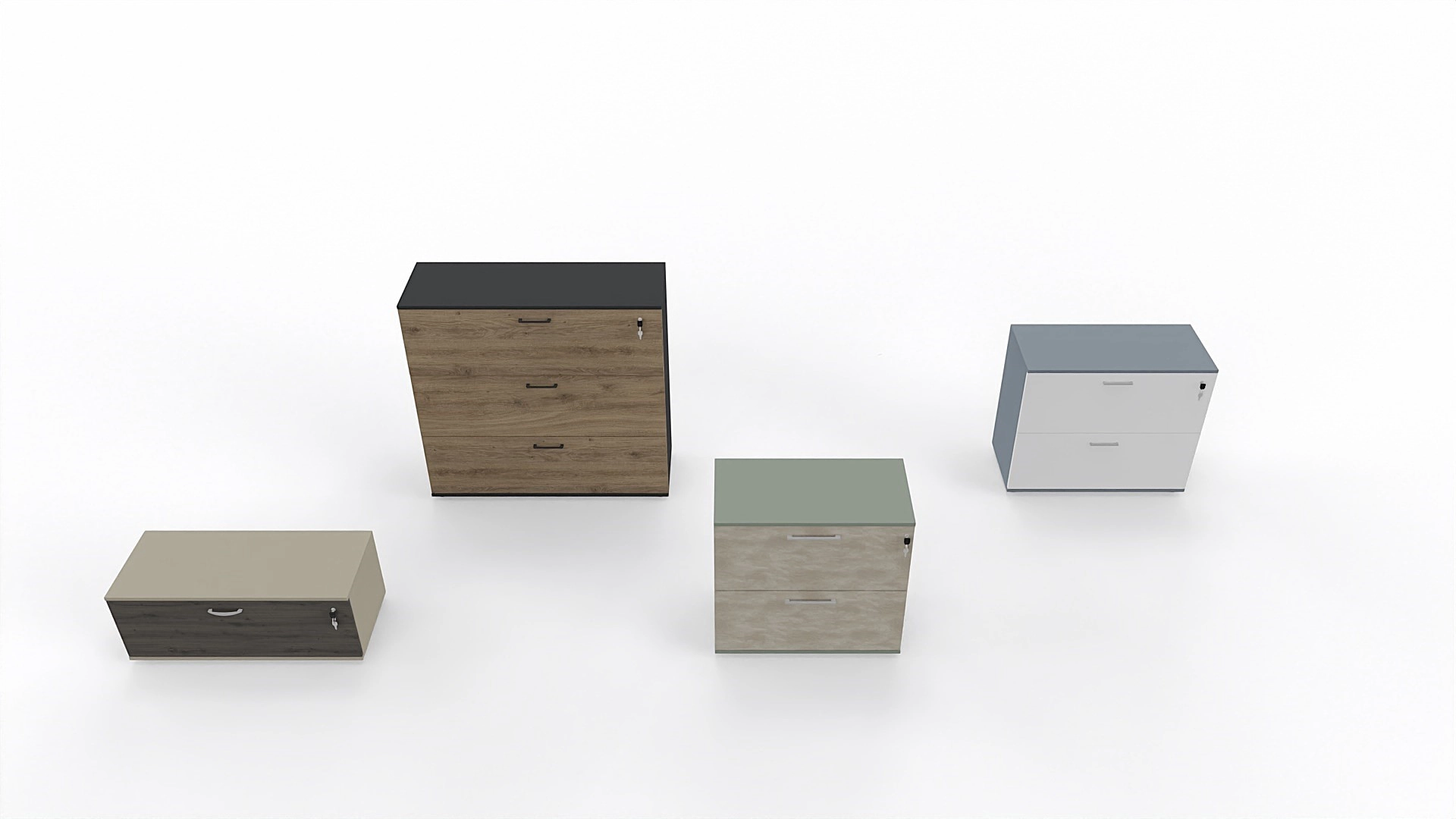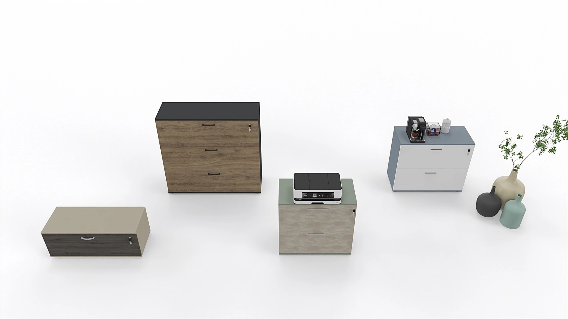 PRO cabinets with drawers provide clear and convenient storage for documents and office supplies. Configurable design makes them suitable for workstations, team areas, and open space environments.