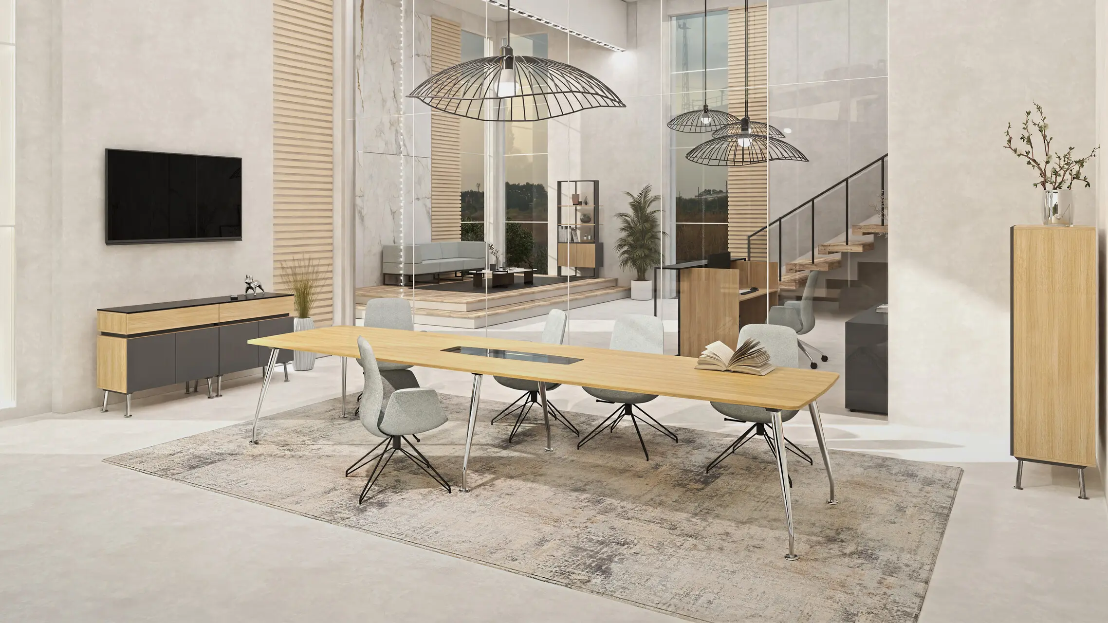 Conference rooms furnished with tables from Sirio collection are synonymous with quality combined with aesthetically pleasing beauty. Rectangular, oval, board and glass tops or board tops with glass inserts give the whole system a smart look.