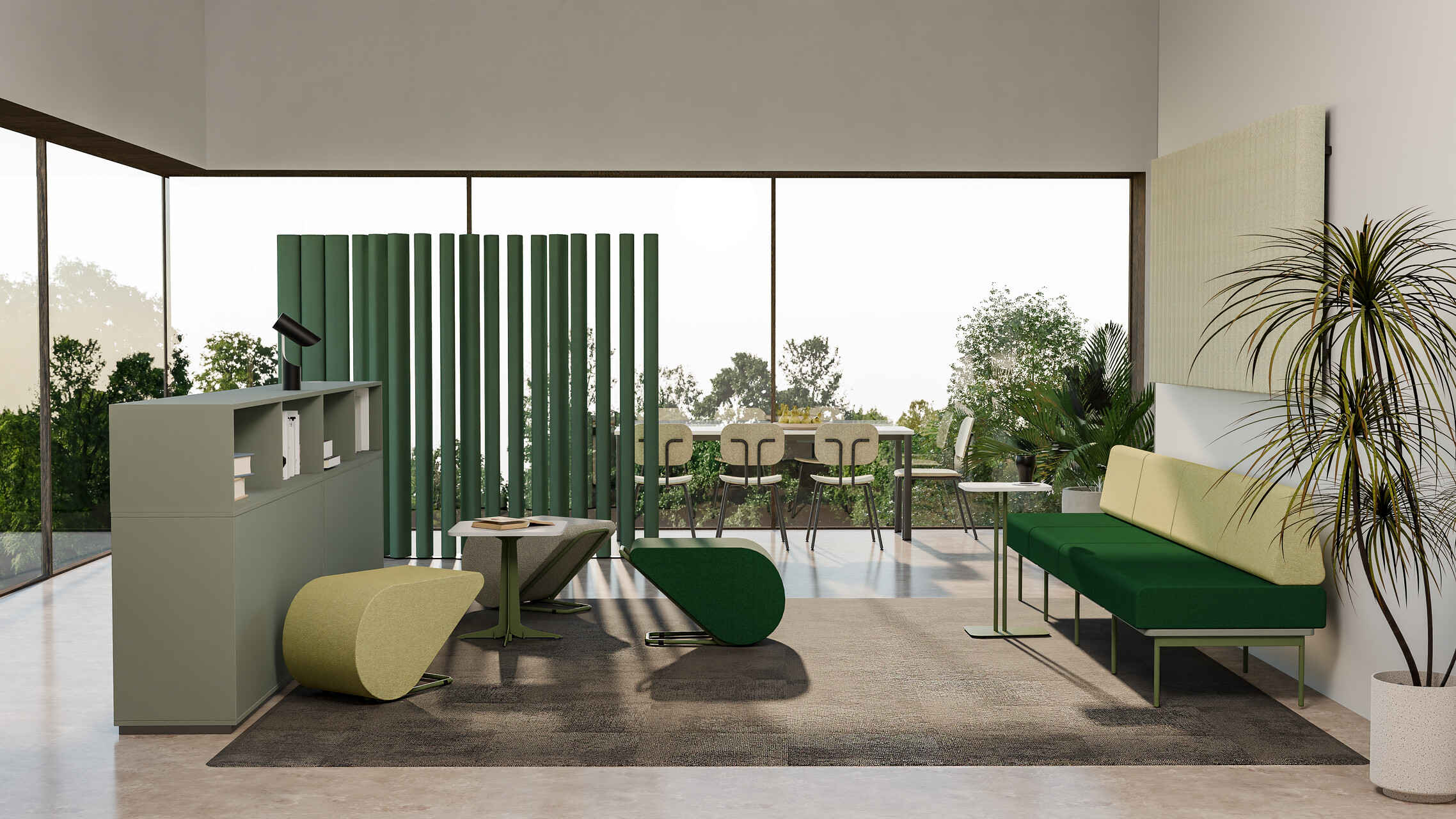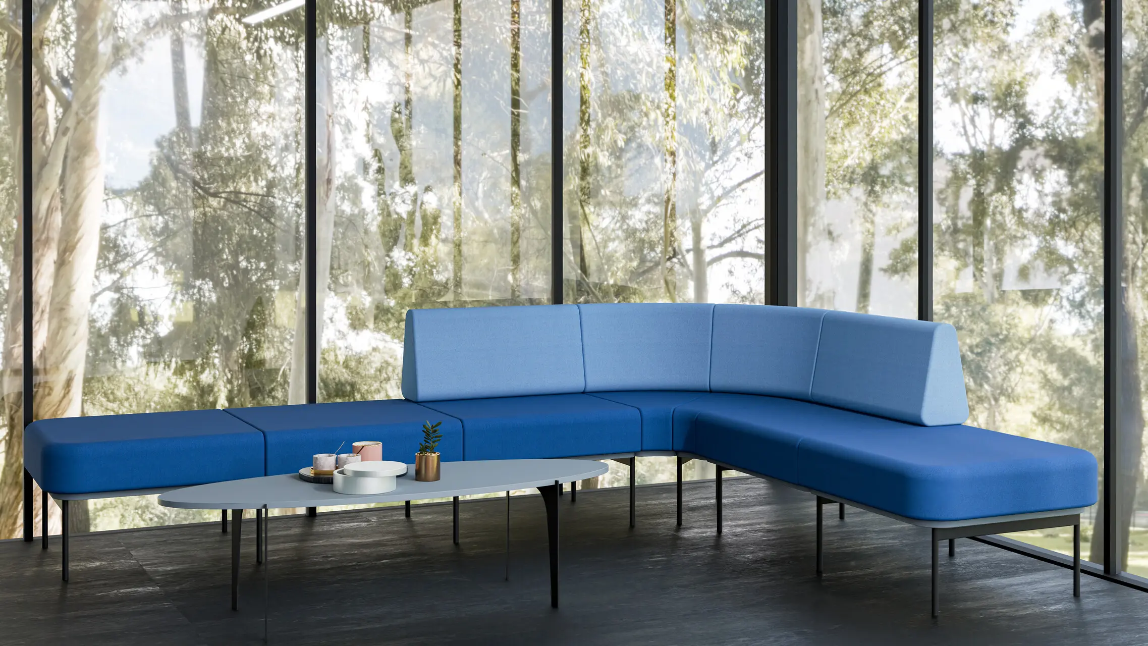 A lightweight, modular office sofa on a powder-coated metal frame. Designed for flexible workspaces.