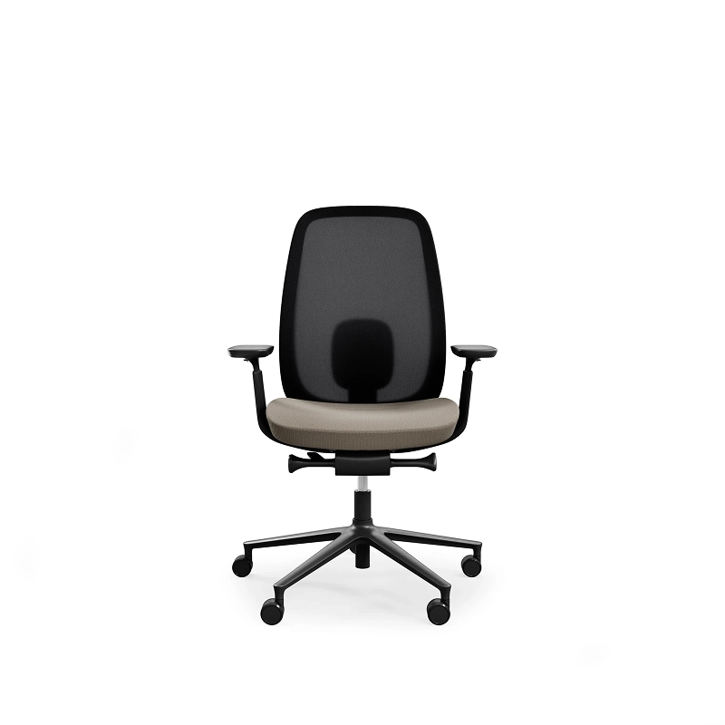Ergonomiczny fotel biurowy z siatkowym oparciem, regulacją głębokości i kąta siedziska oraz mechanizmem Synchro SFL MAX. Idealny do pracy przy biurku.