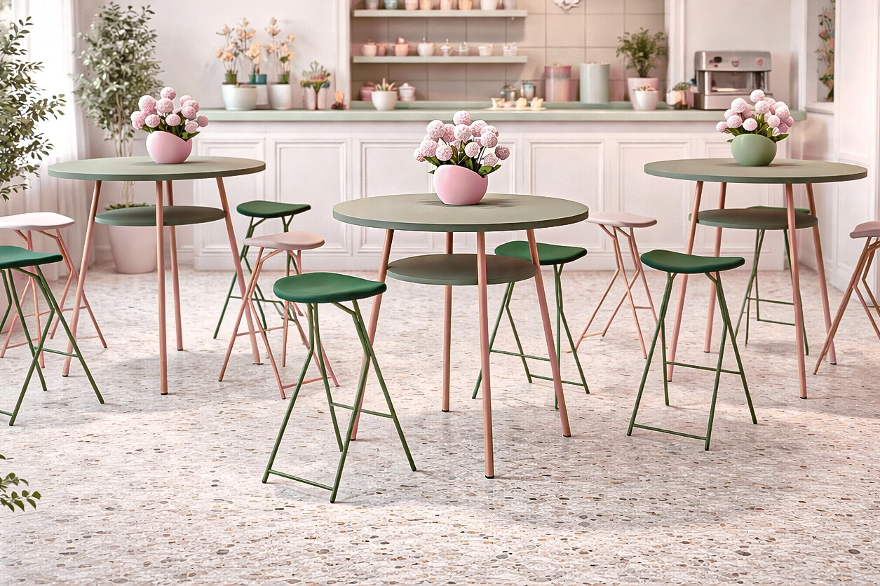 Hocker Saniro dostępny jest w dwóch wysokościach — do blatów kuchennych oraz do lad barowych i wysokich stołów. Siedzisko i oparcie wykonano ze sklejki bukowej w wersji lakierowanej lub tapicerowanej, na stalowym stelażu malowanym proszkowo. Bogata kolorystyka i różne warianty wykończenia pozwalają dopasować go do niemal każdego wnętrza.