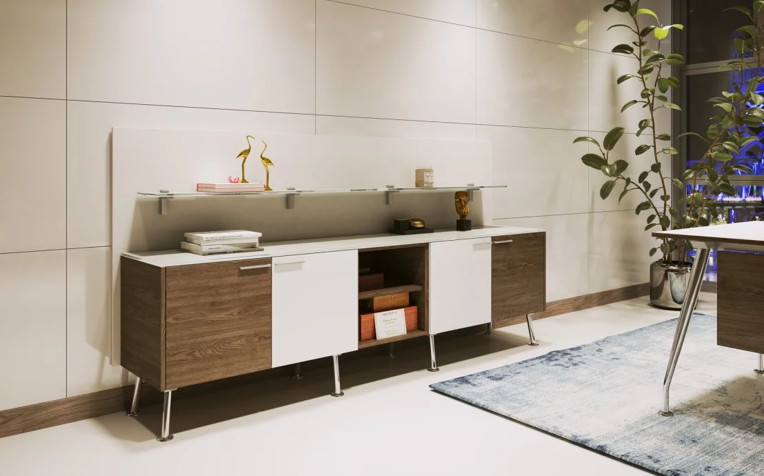 Niska komoda z kolekcji Sirio to funkcjonalny mebel do gabinetów i przestrzeni biurowych. Jej kompaktowy format oraz solidna konstrukcja sprawiają, że idealnie sprawdza się jako estetyczne miejsce do przechowywania bez ekspozycji zawartości.