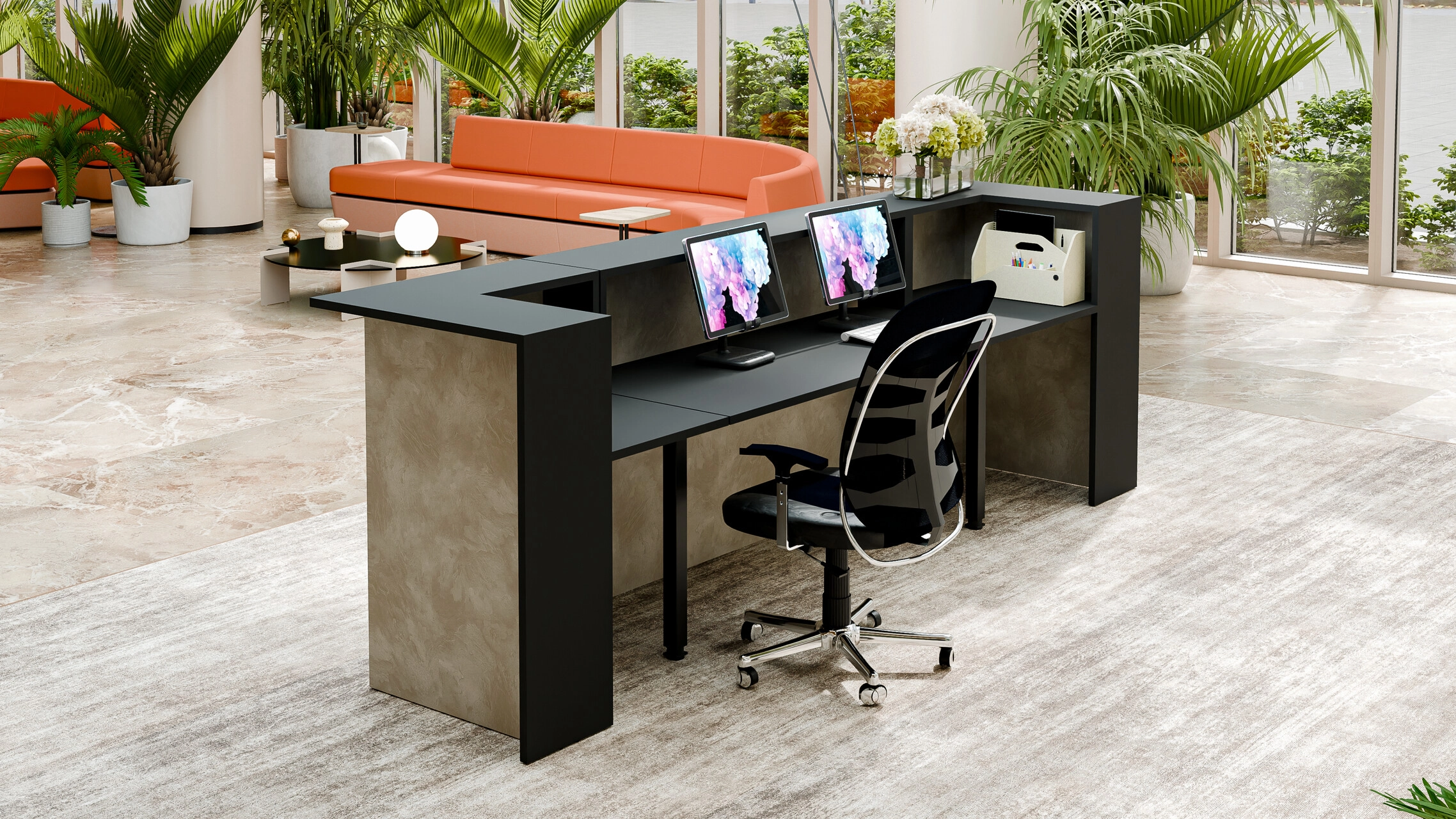 Lady Vero urzekają siłą prostej formy. Minimalizm ubrany w materiały najwyższej jakości to gwarancja efektownej przestrzeni recepcyjnej.